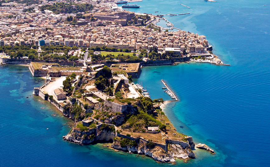 Το ιστορικό κέντρο της Κέρκυρας απλώνεται μεταξύ των δύο φρουρίων -το Παλαιό Φρούριο στα ανατολικά και το Νέο Φρούριο στα δυτικά- που την πλαισιώνουν, τα οποία, μάλιστα, κατά το παρελθόν ενώνονταν από τείχη που «αγκάλιαζαν» την πόλη.