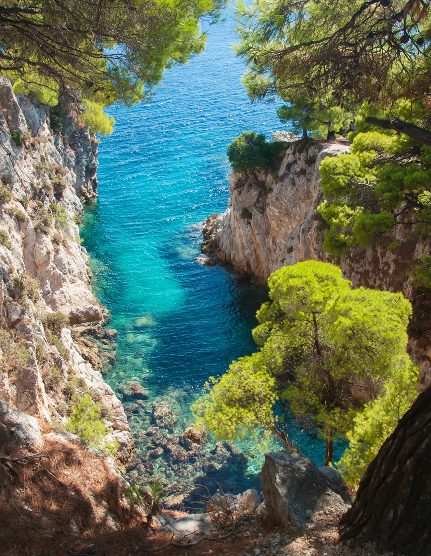 Η μικρή ακτή στην περιοχή προσεγγίζεται μόνο από θαλάσσης, ωστόσο από ψηλά στο βράχο μπορεί να παρατηρήσει κανείς την υπέροχη θέα που απλώνεται μπροστά του.