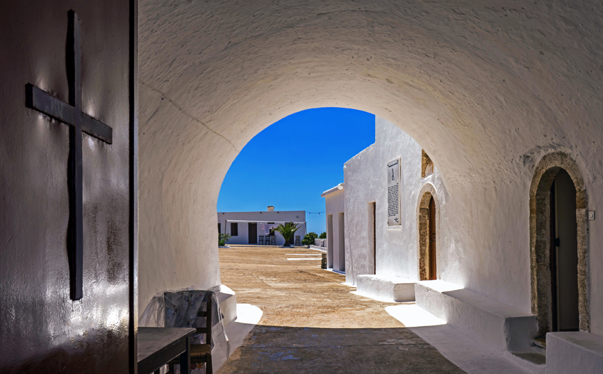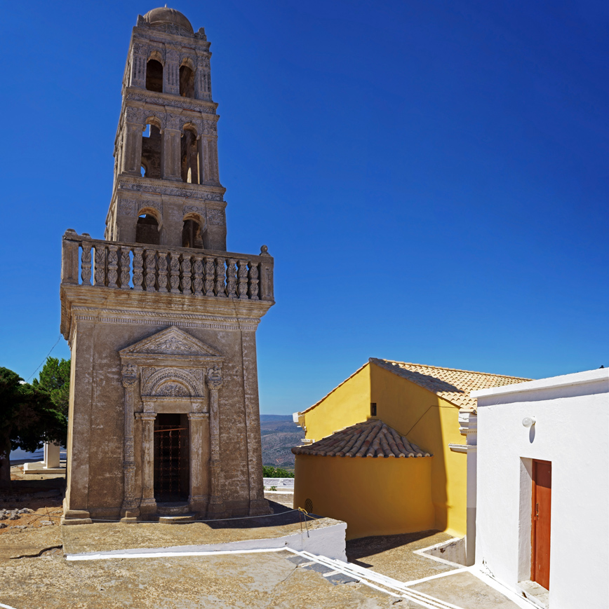 Από τα πιο «δυνατά» σημεία του ναού η απρόσκοπτη θέα τόσο στο νησί, όσο και στο Μυρτώο Πέλαγος και τις ακτές της Πελοποννήσου.