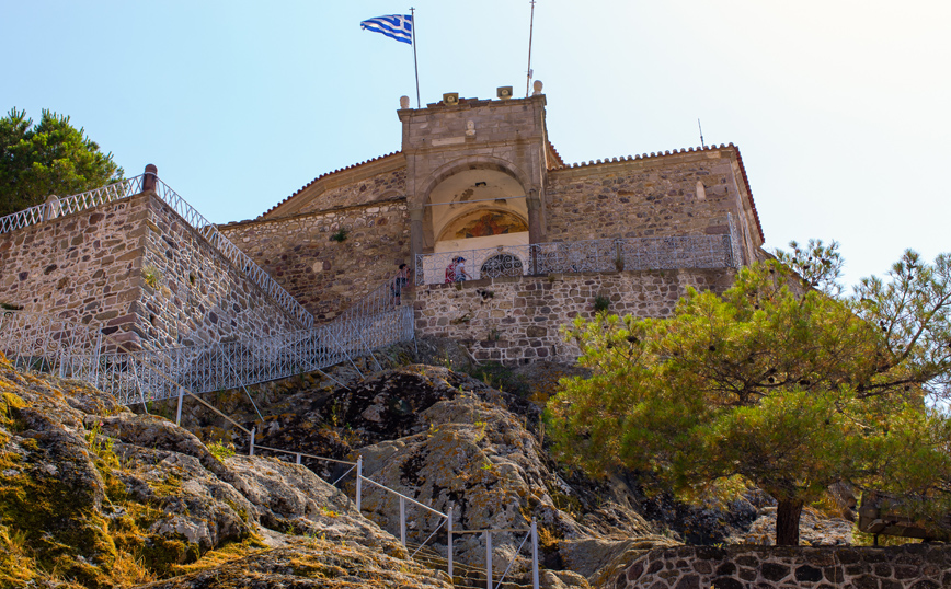 Ο χαρακτηριστικός βράχος του οικισμού ορθώνεται σχεδόν στο μέσον του, μετρά 40 μέτρα ύψος και στην κορυφή του δεσπόζει ο ναός της Παναγιάς Γλυκοφιλούσας. Συνολικά 114 σκαλιά λαξευμένα στην πέτρα οδηγούν στο ψηλότερο σημείο του χωριού, απ’ όπου η θέα είναι ονειρική.