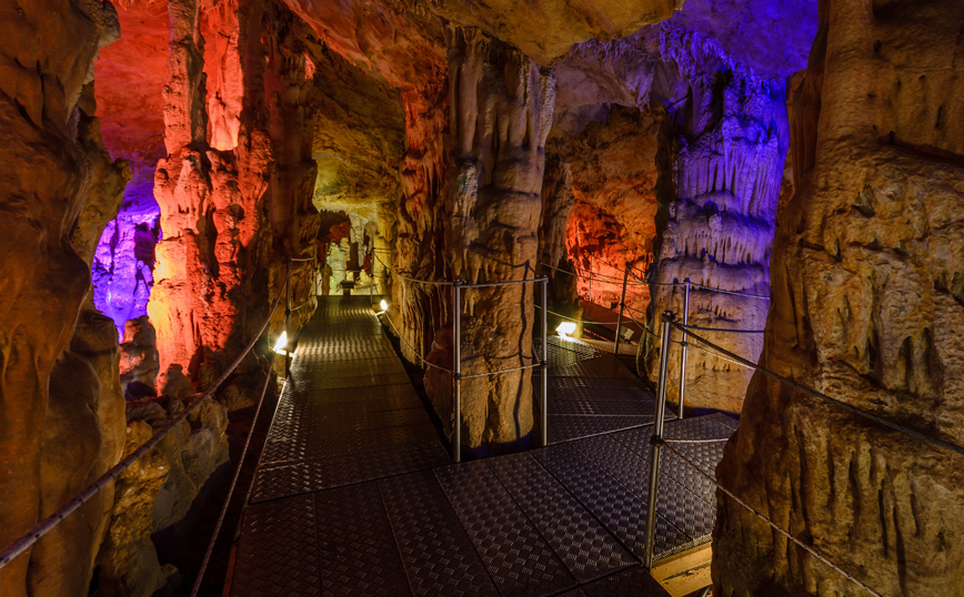 Αυτό, ωστόσο, που το κάνει ιδιαιτέρως ξεχωριστό είναι η σπάνια έγχρωμη λιθωματική «διακόσμησή» του, η οποία δεν μπορεί να κρυφτεί ούτε από το σκοτεινό περιβάλλον του σπηλαίου.