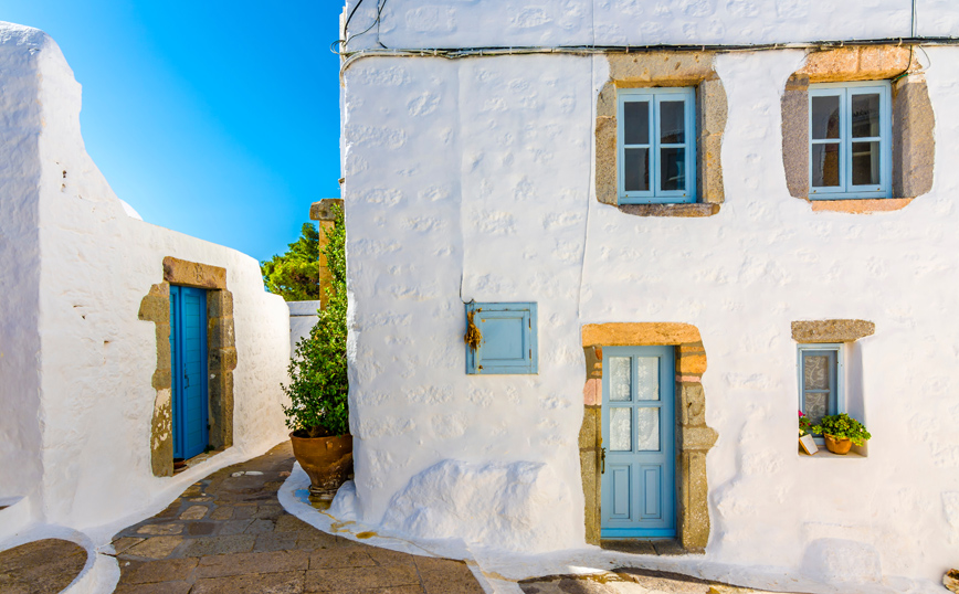Τα ολόλευκα σπίτια και τα εντυπωσιακά αρχοντικά της έχουν κοινά αρχιτεκτονικά στοιχεία που βρίσκονται σε πλήρη αρμονία με την ιερότητα του παραπλήσιου χώρου. Αυτό θα το καταλάβετε από την πρώτη κιόλας στιγμή που θα βρεθείτε να περιδιαβαίνετε τα δαιδαλώδη, πάλλευκα και πεντακάθαρα σοκάκια της.