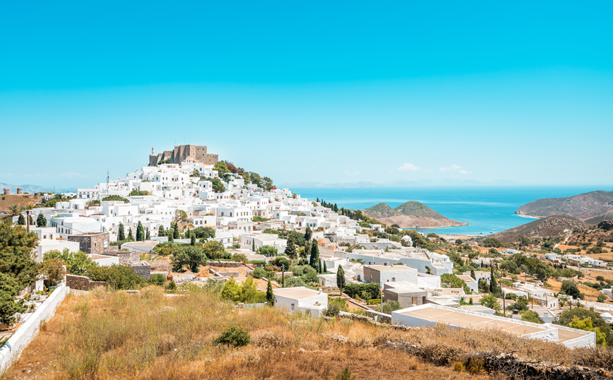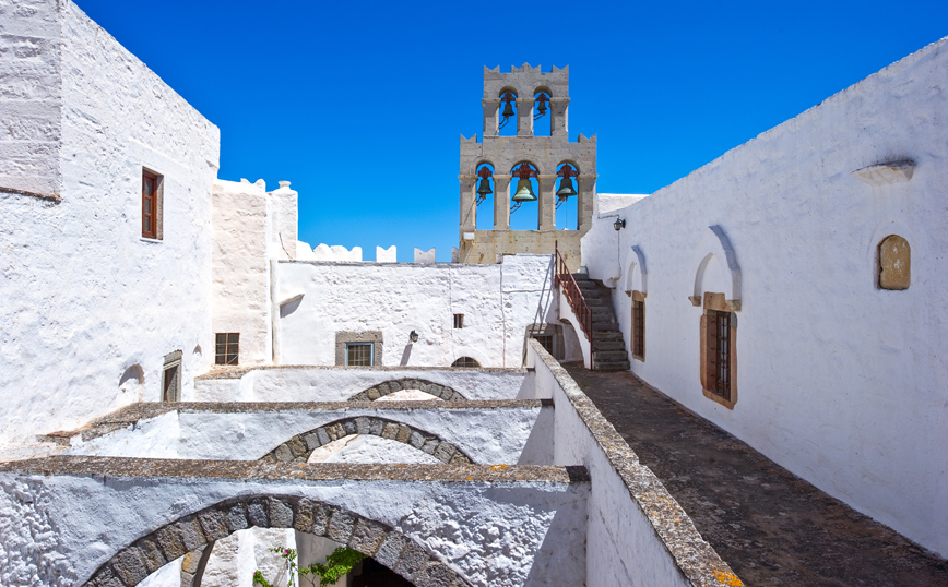 Χτισμένη σε λόφο σε απόσταση 3 χλμ. από το λιμάνι του νησιού, τη Σκάλα, μαζί με την Μονή του Αγίου Ιωάννη του Θεολόγου και το Σπήλαιο της Αποκάλυψης έχει ανακηρυχθεί το 1999 από την UNESCO ως Μνημείο Παγκόσμιας Κληρονομιάς. Οποιαδήποτε στιγμή της ημέρας κι αν την επισκεφτείτε, σε οποιοδήποτε σημείο της κι αν βρεθείτε, σίγουρα θα νιώσετε δέος.
