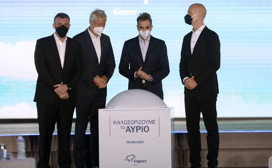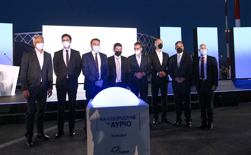 Ο πρωθυπουργός Κυριάκος Μητσοτάκης έδωσε το «παρών» στην εκδήλωση για τα εγκαίνια των 14 αεροδρομίων διαχείρισης της εταιρείας Fraport Greece, μια κοινή εταιρεία της Fraport Γερμανίας και του Ομίλου Κοπελούζου, η οποία παρέδωσε τα αεροδρόμια 3 μήνες νωρίτερα από τον αρχικό προγραμματισμό.