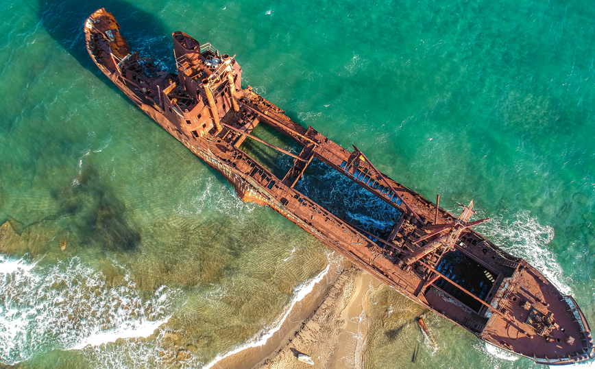 Μόλις το αντικρίσει κανείς σίγουρα νιώθει θαυμασμό και δέος, με το σκουριασμένο κουφάρι του να «κοιμάται» ανενόχλητο κάτω από τον ελληνικό ήλιο, με την αλμύρα της θάλασσας να χαράσσει τις δικές της «ρυτίδες», κάνοντας όλο και περισσότερο πιο εμφανή τα σημάδια του χρόνου πάνω του.