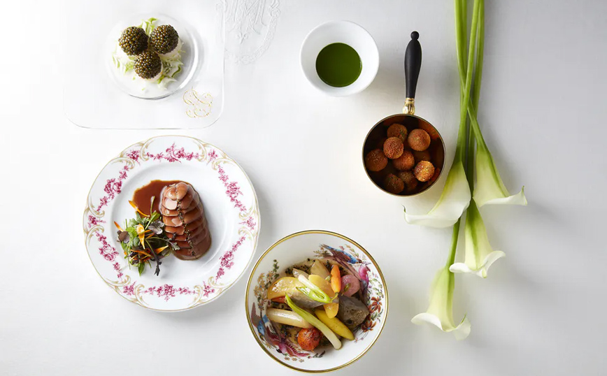 Το εστιατόριο του ξενοδοχείου, με επικεφαλής τον διάσημο σεφ Alain Ducasse, προσφέρει ένα μενού εμπνευσμένο από τον Λουδοβίκο, ο οποίος κυβέρνησε τη Γαλλία για 72 χρόνια, καθώς και κλασικά γαλλικά πιάτα και ένα απογευματινό τσάι αφιερωμένο σε έναν από τους διάσημους κατοίκους του ανακτόρου, τη Μαρία Αντουανέτα.