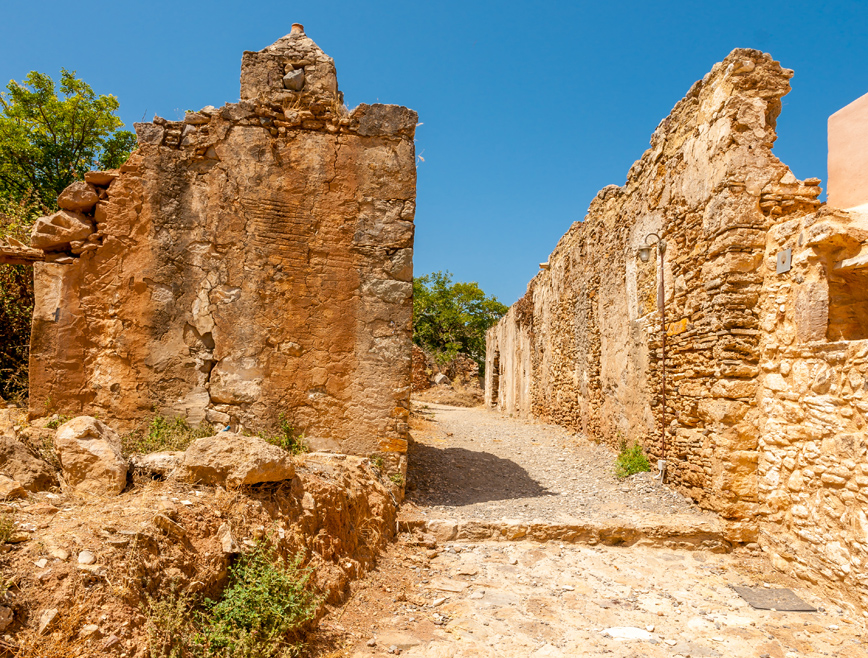 Στον χωρίς ίχνη ζωής οικισμό ο επισκέπτης έρχεται αντιμέτωπος με ένα άκρως ατμοσφαιρικό σκηνικό, με μισογκρεμισμένα κτίρια, λιθόστρωτους δρόμους, καθώς και τους ναούς του Αγίου Αντωνίου, της Παναγίας των Καστριανών και των Αγίων Ασωμάτων.