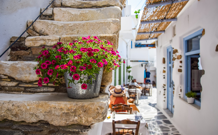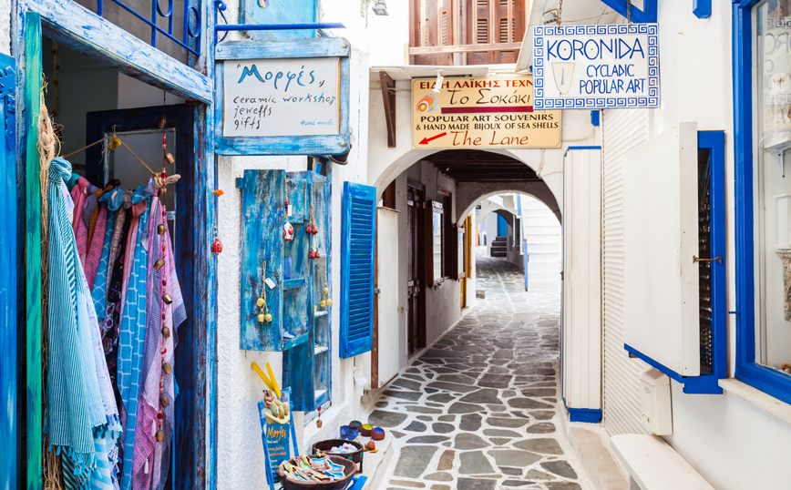 Γραφικές κυκλαδίτικες εικόνες γεμάτες με στενά σοκάκια, κυκλαδίτικης αρχιτεκτονικής κτίρια με χρωματιστές λεπτομέρειες που έχουν μετατραπεί σε επιχειρήσεις και βενετσιάνικα αρχοντικά με τους χαρακτηριστικούς θυρεούς συνθέτουν ένα υπέροχο πάζλ φωτογραφικών κλικ που αποκαλύπτουν το αληθινό πρόσωπο του νησιού.