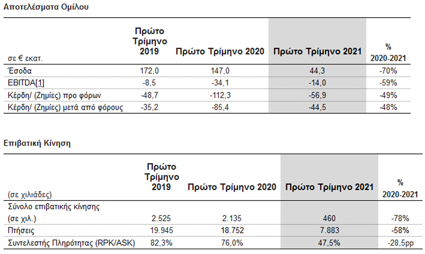 «Η πτητική δραστηριότητα του Ομίλου κυμάνθηκε σε ιδιαίτερα χαμηλά επίπεδα το πρώτο τρίμηνο του 2021, λόγω του δεύτερου κύματος της πανδημίας και των περιορισμών, επηρεάζοντας τα αποτελέσματά μας. Αντίστοιχη ήταν και η πορεία του δεύτερου τριμήνου έως και τις αρχές Ιουνίου. Σε επίπεδο ταμειακών ροών όπως έχουμε ήδη δηλώσει, λόγω των προπωλήσεων εισιτηρίων σημειώθηκε θετικό πρόσημο από τον Μάϊο του 2021 μέχρι σήμερα.