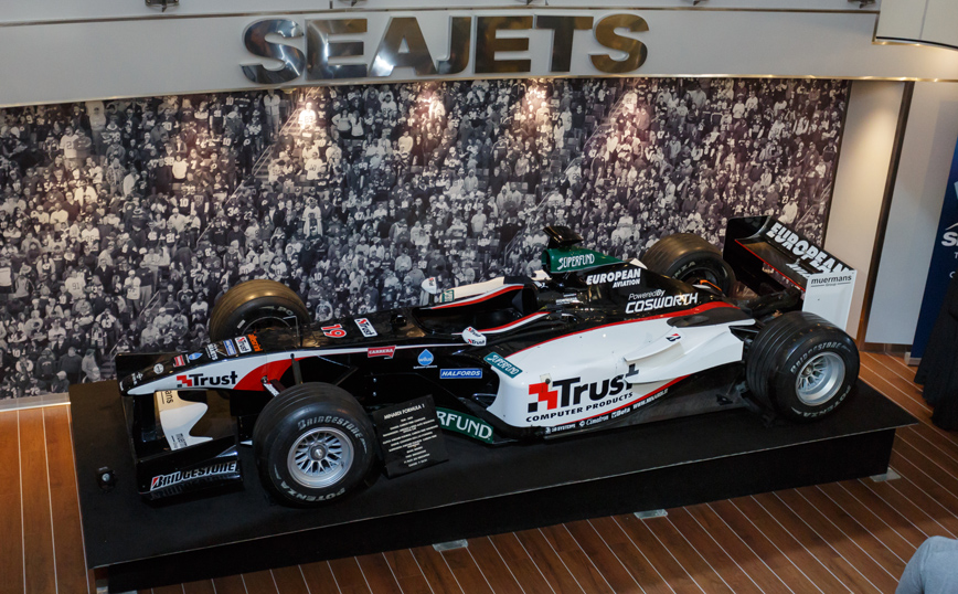 Μια από τις ιδιαιτερότητες και έκπληξη για τους επιβάτες του πλοίου, είναι το πρωτοποριακό concept του Πρωταθλητή κόσμου. Στο κεντρικό αίθριο του πλοίου θα βρείτε ένα αυθεντικό μονοθέσιο της Formula 1, το οποίο έχει τρέξει στον κορυφαίο παγκοσμίως θεσμό του μηχανοκίνητου αθλητισμού.