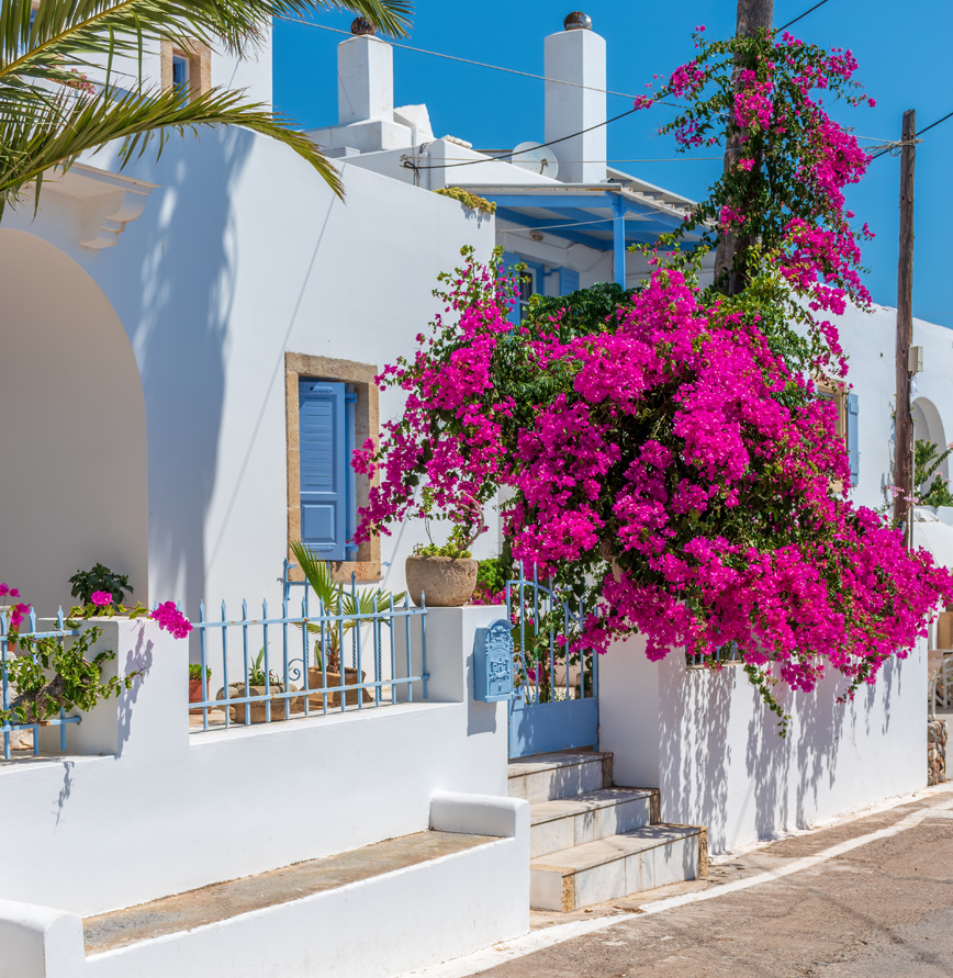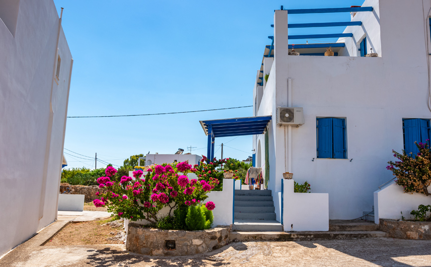 Τα λιγοστά σπίτια του χωριού είναι πάλλευκα και με χρωματιστές λεπτομέρειες από τις φούξια βουκαμβίλιες και τα μπλε πορτοπαράθυρα, με έντονες αιγιοπελαγίτικες επιρροές, ενώ ο οικισμός φημίζεται για τις ψαροταβέρνες με θέα στο μικρό και γραφικό κόλπο.