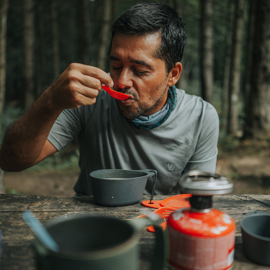 «Τα πρώτα 7 χιλιόμετρα περάσαν σχετικά εύκολα μιλώντας με τον Μανώλη για το παρελθόν μας και προσπαθώντας να υπολογίσουμε τι ώρα θα καταφέρουμε να φτάσουμε στον τελικό μας προορισμό. Τα επόμενα 17 χιλιόμετρα μας βρήκαν με γρήγορο βήμα να διασχίζουμε έως και τρία είδη δασών μαύρης Πεύκης, Σημύδας, Ελάτης και να μένουμε αποσβολωμένοι από την ομορφιά του τοπίου, τα πολλά τρεχούμενα νερά και την απίστευτη φύση» σημειώνει και συμπληρώνει: «Στο 24ο χιλιόμετρο μετά από συνεχόμενη κατάβαση στην κοίτη ενός ποταμού και ήδη 4,5 ώρες πορείας αποφασίσαμε για 30 λεπτά στάση. Βγάλαμε το ορειβατικό μας γκαζάκι, βράσαμε τον τραχανά μας σε συνδυασμό με λίγο ψωμί που είχε απομείνει από την προηγούμενη ημέρα. Κάναμε λουκούλλειο γεύμα. Η μισή ώρα πέρασε σαν να ήταν 5 λεπτά. Ο χρόνος γενικά στο βουνό περνάει γρήγορα και εμείς έπρεπε πια να τρέξουμε για να προλάβουμε κάποιο ανοιχτό καταφύγιο για να μας δεχτεί το βράδυ».