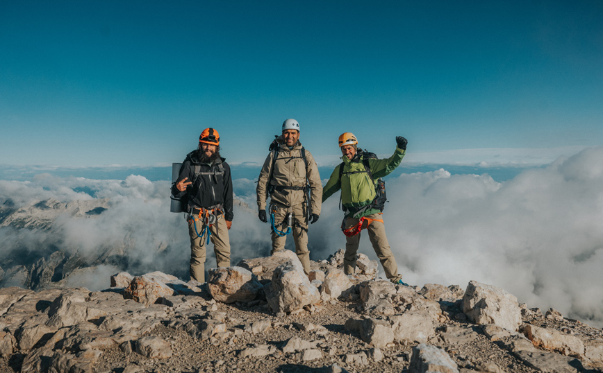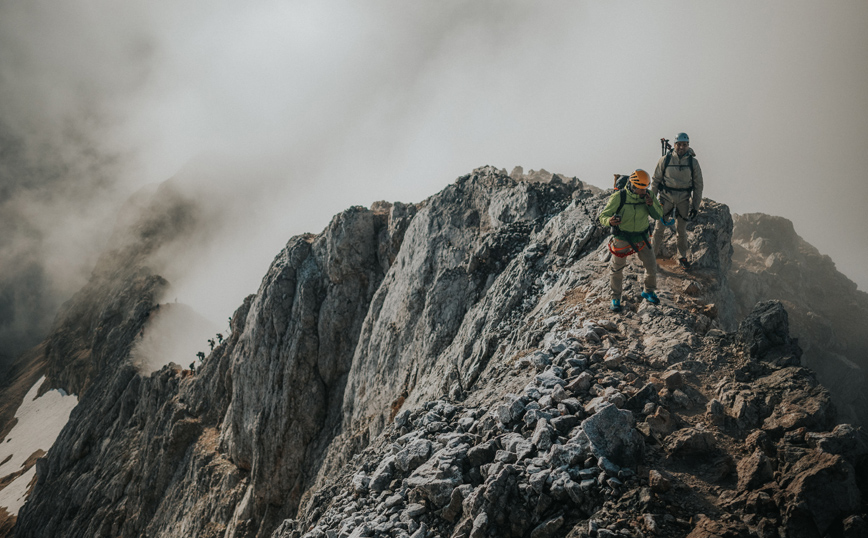 «Η ανάβαση για την κορυφή είναι ιδιαίτερη. Έχει αρκετό σκαρφάλωμα σε εκτεθειμένα σημεία αλλά γνωρίζουμε πως είναι καλά ασφαλισμένα. Κάποιες στιγμές ο ορειβάτης θα περπατάει στην κόψη του βουνού και θα μπορεί να ασφαλιστεί με τα εργαλεία του στα συρματόσχοινα, αν επιθυμεί. Με ασφάλεια και χωρίς πολλές σκέψεις ανεβαίνουμε με γρήγορα βήματα προς αυτήν» εξηγεί ο Λευτέρης Παρασκευάς.