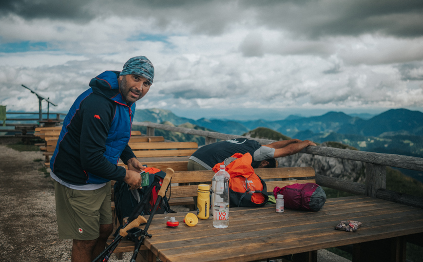 «Η πιο ενθουσιώδης ημέρα απ’ όλες ξεκινάει στις 5 το πρωί. Ο Μανώλης ξυπνάει και τρέχει στο παράθυρο για να δει τον καιρό. Το βράδυ που κοιμόμασταν στο καταφύγιο στα 2.560 μέτρα ο καιρός έδινε ρεσιτάλ βροχής, ομίχλης και κρύου και η αλήθεια είναι πως λόγω αυτού κοιμηθήκαμε λίγο άστατα και με άγχος» αναφέρει μιλώντας στο Newsbeast.