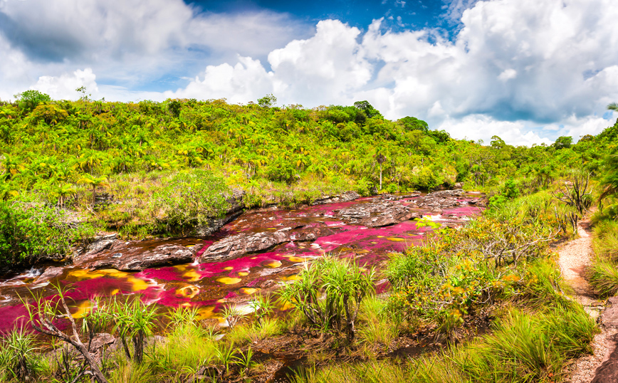 Το Cano Cristales, γνωστό και ως «Ποτάμι των Πέντε Χρωμάτων» ή «Υγρό Ουράνιο Τόξο», διανύει μια απόσταση 100 χλμ., κατά την οποία μπορεί να συναντήσει κανείς οποιοδήποτε μείγμα χρωμάτων, συμπεριλαμβανομένου του κίτρινου, του μπλε, του πράσινου, του πορτοκαλί και ενός πορφυρού φούξια, σύμφωνα με όσα αναφέρει το grunge.com. Ο συγκεκριμένος ποταμός αποτελεί μοναδικό θέαμα με το μιξ χρωμάτων σε διάφορα σημεία του να δημιουργούν εικόνες που μοιάζουν εντελώς ψεύτικες. Αν και στην αρχή μπορεί να φαίνεται σαν να προστέθηκε τεχνητή βαφή στο νερό, αυτός ο ποταμός ουράνιο τόξο είναι ένα εντελώς φυσικό φαινόμενο.