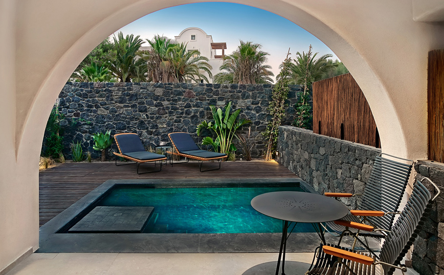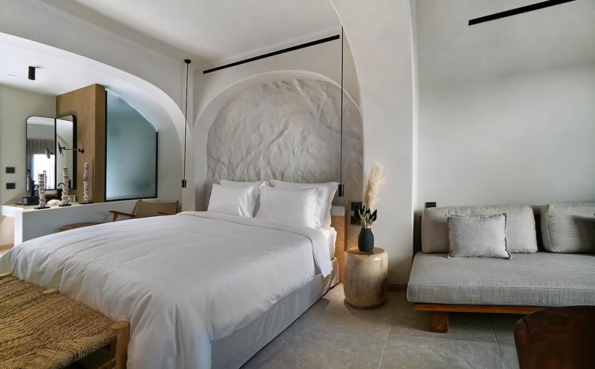Εμπνευσμένο από τους θερμούς και γήινους τόνους του περίφημου τοπικού καρυκεύματος σαφράν, το Radisson Blu Zaffron Resort στην Σαντορίνη διαθέτει 103 ευρύχωρα δωμάτια και σουίτες καθώς επίσης και αυτόνομες βίλλες επιφάνειας 54 τ.μ. Επηρεασμένο και απόλυτα εναρμονισμένο με την χαρακτηριστική αρχιτεκτονική του νησιού, το ξενοδοχείο προσφέρει πολυτελή διαμονή μέσα σε μια ατμόσφαιρα ηρεμίας και μινιμαλιστικής αισθητικής, εκεί όπου “πινελιές” από ξύλο, πέτρα και μάρμαρο μαρτυρούν και αναδεικνύουν τη μοναδικότητα του τόπου. Οι επισκέπτες μπορούν να απολαύσουν τον κυκλαδίτικο ήλιο σε ιδιωτικά μπαλκόνια ή βεράντες, ενώ τα μεγαλύτερα δωμάτια, σουίτες και βίλες προσφέρουν ιδιωτική μικρή πισίνα ή τζακούζι.