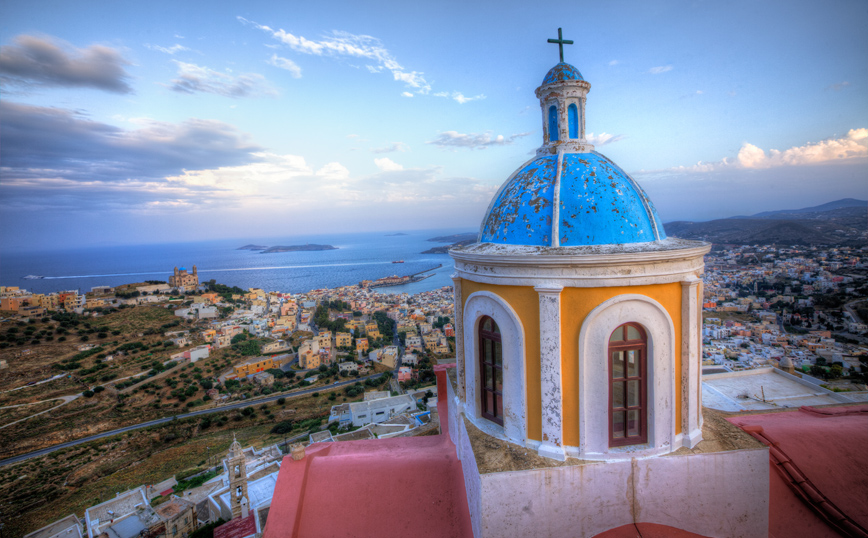 Η Άνω Σύρος συναρπάζει τον ταξιδιώτη με τις ιστορίες και τους μύθους που την περιβάλλουν και παραμένουν ζωντανοί ακόμη και σήμερα. Χτισμένη πάνω σε λόφο, με τον καθεδρικό ναό του Αγίου Γεωργίου, ή αλλιώς τον Σαν Τζώρτζη, στην κορυφή του, «βλέπει» από ψηλά την Ερμούπολη, πρωτεύουσα των Κυκλάδων και μεγαλύτερο οικισμό του νησιού, από την οποία απέχει περίπου 3,5 χλμ, ενώ προσφέρει και ονειρική θέα στο Αιγαίο.