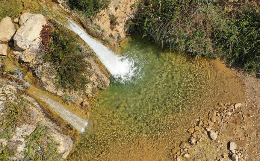 Ο μικρός αυτός καταρράκτης, ύψους περίπου 5-6 μέτρων, αλλάζει μορφή ανάλογα με τις βροχές. Όταν τα νερά λιγοστεύουν δημιουργούνται δύο δίδυμοι καταρράκτες, ενώ όταν βρέχει πολύ, το ρέμα μετατρέπεται σε δυνατό χείμαρρο.