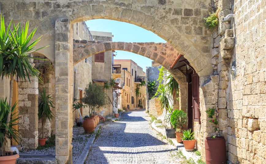 Περιηγηθείτε στα δεκάδες λιθόστρωτα στενά όπου μεσαιωνικά κτίρια συνυπάρχουν με ανατολίτικους μιναρέδες και όμορφες πλατείες με σιντριβάνια ενώ δεκάδες μικρά μαγαζάκια θα σας προσκαλούν σε ένα σωρό απολαύσεις και αγορές. Η περίφημη «Οδός των Ιπποτών» είναι διάσπαρτη από τις κατοικίες των μελών του Τάγματος των Ιπποτών του Αγίου Ιωάννη ενώ άφωνους θα σας αφήσει και το Παλάτι του Μεγάλου Μαγίστρου (Καστέλλο) με τα πανέμορφα ψηφιδωτά δάπεδα, τα βαριά μεσαιωνικά έπιπλα, και τους ζωγραφικούς πίνακες.