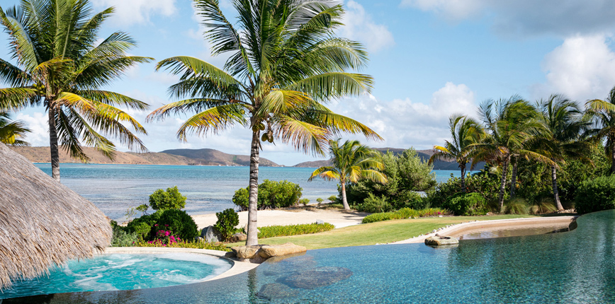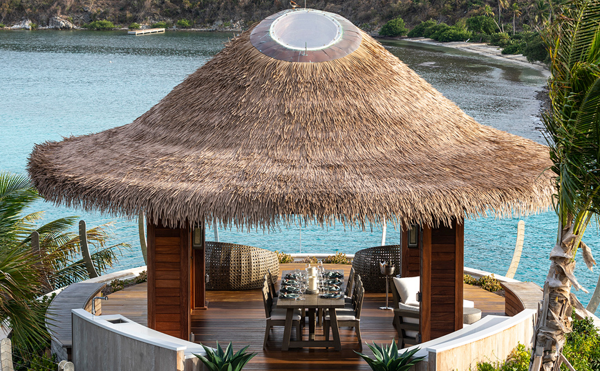 Το κτήμα Oasis, σκαρφαλωμένο στο ψηλότερο σημείο του νησιού και σχεδιασμένο από τον διευθυντή Μπράνσον.