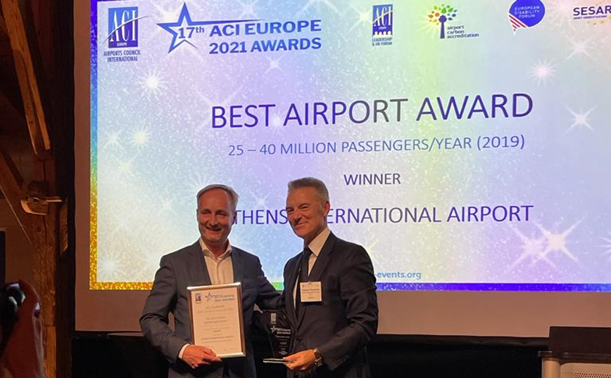 Ως το κορυφαίο αεροδρόμιο στην κατηγορία των αεροδρομίων με 25-40 εκατομμύρια επιβάτες αναδείχθηκε για το 2021 ο Διεθνής Αερολιμένας Αθηνών, στο πλαίσιο του θεσμού Best Airport Awards του Διεθνούς Συμβουλίου Αεροδρομίων-ACI Europe.