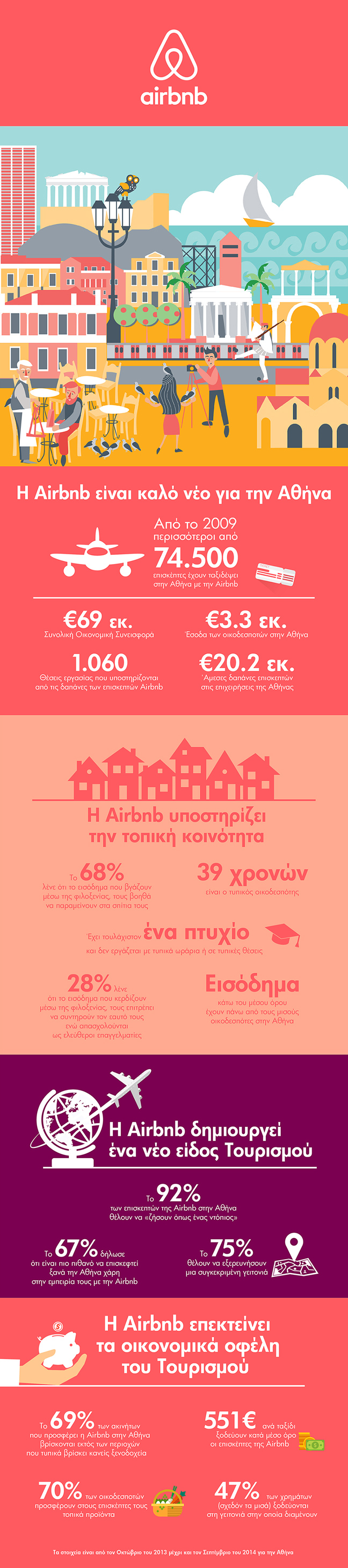 – Από τον Οκτώβριο του 2013 μέχρι και τον Σεπτέμβριο του 2014, η κοινότητα της Airbnb έχει συνεισφέρει στην ελληνική οικονομία, 69 εκ. ευρώ στο σύνολο της οικονομικής δραστηριότητας.
