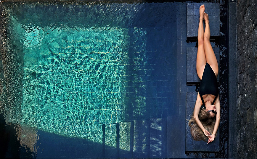 Το στοιχείο του νερού δίνει παντού το «παρών». Πέρα από την παραλία, τζακούζι και θερμαινόμενες ιδιωτικές πισίνες υπάρχουν σε όλα σχεδόν τα δωμάτια, ενώ το Zaffron διαθέτει και δύο κεντρικές θερμαινόμενες πισίνες, 220 και 138 τ.μ. Η κεντρική πισίνα αποτελεί την καρδιά του θερέτρου, με τον εντυπωσιακό, ασπρόμαυρο μαίανδρό της να μαγνητίζει τους επισκέπτες. Αποτελώντας ένα ιδανικό σκηνικό τόσο για χαλαρά μεσημέρια όσο και για αξέχαστες βραδιές, το μπαρ της πισίνας θα φιλοξενήσει διεθνώς γνωστούς guest DJs αλλά και πολλά ακόμα θεματικά events.