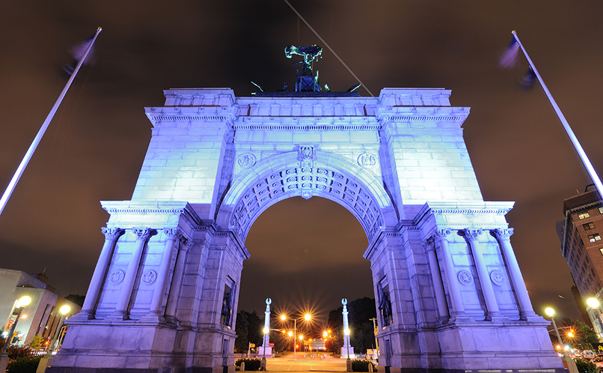 Ακριβώς πάνω από των 526 στρεμμάτων Prospect Park, η Αψίδα των Στρατιωτών και των Ναυτών στέκεται σε ύψος 24 μέτρων. Σχεδιασμένη από τον αρχιτέκτονα John H. Duncan, ανεγέρθηκε μεταξύ 1889 και 1892 και είναι αφιερωμένη στους «Υπερασπιστές της Ένωσης, 1861–1865. Το μοναδικό σχέδιο του Duncan ήταν μία από τις 36 επιλογές που υποβλήθηκαν για την αψίδα. Εκτός από την ήδη δραματική όψη της επιβλητικής καμάρας, υπάρχουν και χάλκινα γλυπτά του Frederick MacMonnies.