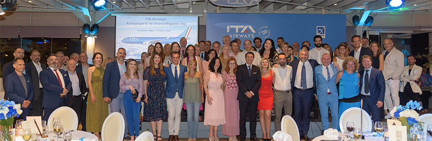 Χθες, 1 Ιουνίου στο Eleon Loft, με εκπληκτική θέα στην Ακρόπολη και το Λυκαβηττό, η ITA Airways, ο νέος εθνικός αερομεταφορέας της Ιταλίας παρουσίασε το πρόγραμμα πτήσεων από και προς την Ελλάδα για την καλοκαιρινή περίοδο 2022, σε εκπροσώπους των ελληνικών ΜΜΕ, καθώς και σε επιχειρηματικούς συνεργάτες της στην ελληνική αγορά. Η ITA Airways εκπροσωπήθηκε από τον κ. Pierfrancesco Carino, Αντιπρόεδρο Διεθνών Πωλήσεων, τον κ. Aldo D’Elia, Διευθυντή Ανάπτυξης Διεθνών Πωλήσεων και την τοπική ομάδα της ITA Airways. Η εκδήλωση πραγματοποιήθηκε με τη συνεργασία του Διεθνούς Αερολιμένα Αθηνών. Στην εκδήλωση παρευρέθηκε η κ. Ιωάννα Παπαδοπούλου, Διευθύντρια Επικοινωνίας και Μάρκετινγκ του Διεθνούς Αερολιμένα Αθηνών.