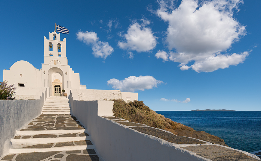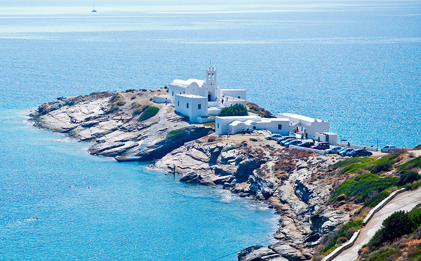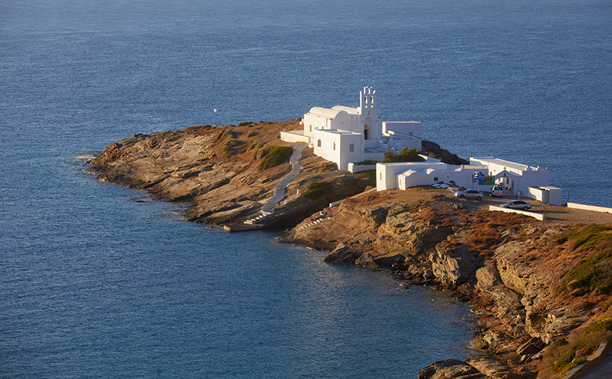Αν ένα σημείο στη Σίφνο έχει συνδυαστεί άρρηκτα με το όμορφο κυκλαδονήσι, αυτό σίγουρα είναι η μονή της Χρυσοπηγής. Πάνω σε έναν εντυπωσιακό βράχο, μοιάζει να αναδύεται από τα νερά του Αιγαίου, σαν πάλλευκη πινελιά στο βαθύ μπλε της θάλασσας. Από τις εικόνες που σίγουρα αποτυπώνονται για πάντα στη μνήμη των επισκεπτών του νησιού.