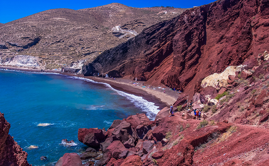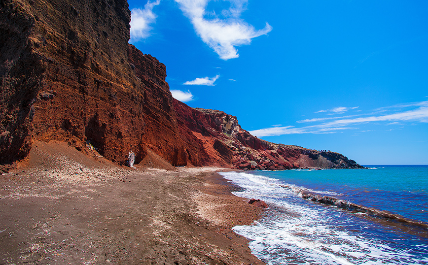 Ένα από τα σημεία του νησιού, λοιπόν, που συγκλονίζουν τους πάντες και η Κόκκινη παραλία, η ακτή στο νότιο τμήμα του νησιού που παραπέμπει στον πλανήτη Άρη.