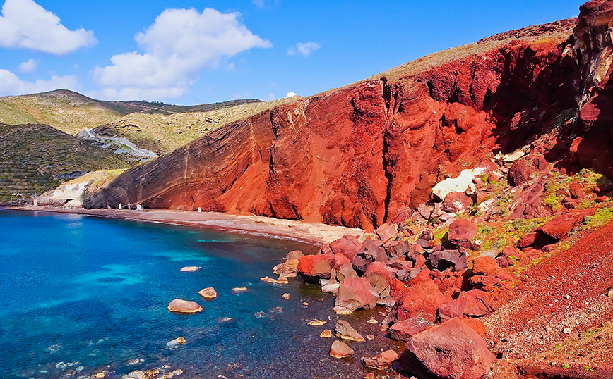 Κόκκινη Παραλία Σαντορίνης: Το φυσικό σκηνικό που δεν θυμίζει ότι βρίσκεστε στη Γη