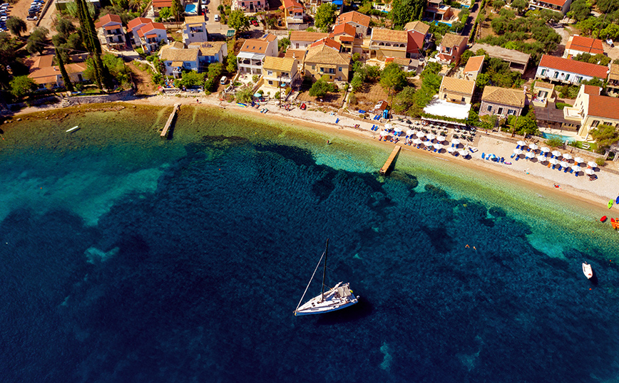 Μόλις αντικρίσει κανείς την εικόνα στην κυριολεξία μαγεύεται με τη σπάνια φυσική ομορφιά να αγκαλιάζει την παραλία σε σχήμα πετάλου και να κεντρίζει τα βλέμματα όλων, κερδίζοντας φυσικά τις εντυπώσεις. Το καταπράσινο τοπίο που κατηφορίζει προς την ακτή, ακουμπώντας σχεδόν τα ονειρικά νερά του Ιονίου, δημιουργεί εικόνες απαράμιλλου φυσικού κάλλους και ένα μοναδικό σκηνικό που μένει πραγματικά αξέχαστο.