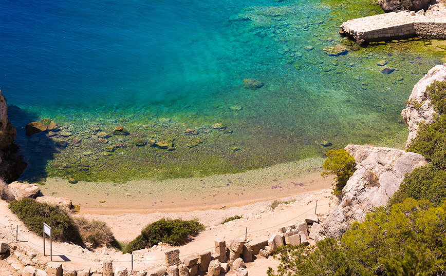 Σήμερα διασώζεται πλήθος κτισμάτων και χώρων, ενώ ο αρχαιολογικός χώρος γίνεται το πιο εντυπωσιακό φόντο για τις βουτιές, καθώς οι λουόμενοι κάνουν ουσιαστικά μπάνιο μέσα στον αρχαίο ναό.