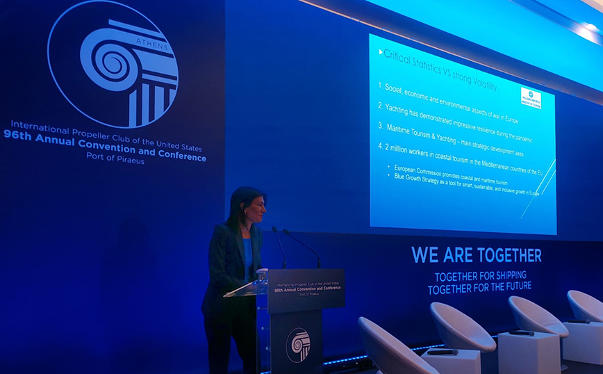 Συγκεκριμένα η Γενική Γραμματέας Τουριστικής Πολιτικής και Ανάπτυξης, μιλώντας ως καλεσμένη του Ιnternational Propeller Club of the United States, Port of Piraeus, του παλαιότερου ενεργού Club εκτός ΗΠΑ και του μεγαλύτερου στον κόσμο σε ό,τι αφορά τον αριθμό μελών, επισήμανε ότι «η Ελλάδα διαθέτει τα χαρακτηριστικά εκείνα που την καθιστούν έναν από τους ελκυστικότερους προορισμούς για τουρισμό με σκάφη αναψυχής και κρουαζιέρες όλων των επιπέδων στην Ευρώπη. Ως εκ τούτου επικεντρώνουμε τις δράσεις του Υπουργείου σε 2 επίπεδα: στην βελτίωση των Υποδομών με τους Τουριστικούς Λιμένες-Μαρίνες καθώς και την νέα Στρατηγική Μάρκετινγκ που θέτει τον ναυτικό τουρισμό στην κορυφή των προτεραιοτήτων μας».