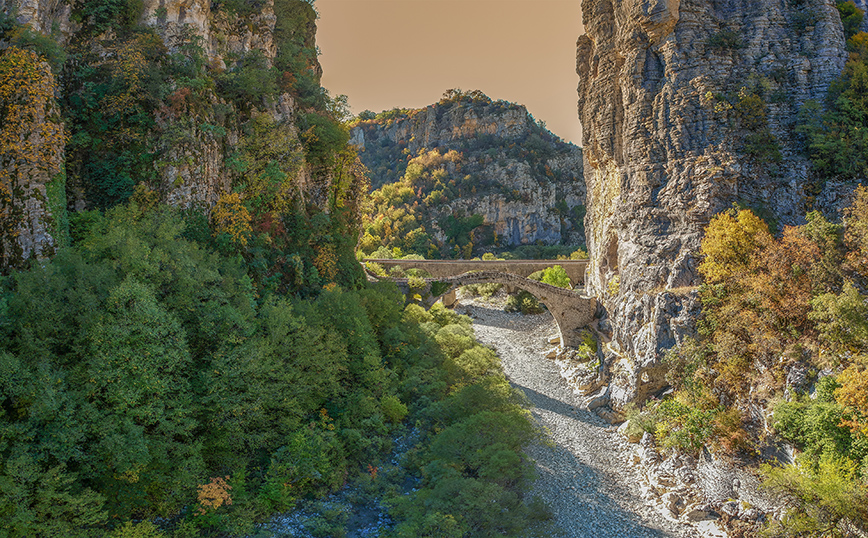 Ακριβώς δίπλα στο γεφύρι εντύπωση και δέος προκαλεί ο κατακόρυφος βράχος που μοιάζει να δεσπόζει επιβλητικός πάνω από το δημοφιλές αξιοθέατο του Ζαγορίου. Λέγεται, μάλιστα, ότι στη σπηλιά που υπάρχει μέσα στο βράχο είχαν βρει καταφύγιο το 1881 ο λήσταρχος Νταβέλης -όχι ο θρυλικός λήσταρχος Χρήστος Νταβέλης- μαζί με άλλους δύο ληστές. Επίσης, κοντά στο γεφύρι βρίσκεται ο μύλος του Κόκκορου και ένα ξωκλήσι αφιερωμένο στην Αγία Παρασκευή.