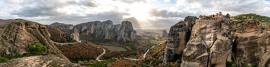 Ο επισκέπτης θα έρθει αντιμέτωπος με ένα εντυπωσιακό τοπίο γεμάτο πλατώματα, χαράδρες και τα απόκοσμα βράχια των Μετεώρων που μοιάζουν να θέλουν να αγγίξουν τον ουρανό. Και μοναδική στιγμή, όπως την έχουν περιγράψει πολλοί, είναι όταν σηκώνεις το βλέμμα σου προς τα Μετέωρα, ειδικά τις απογευματινές ώρες.