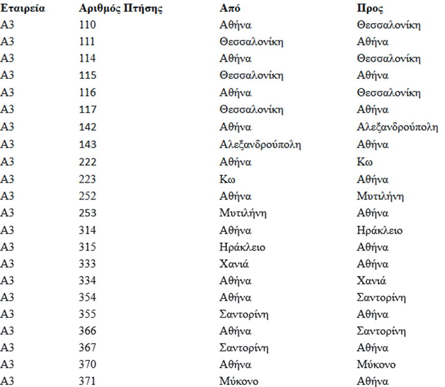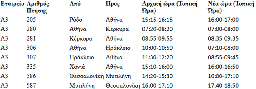 Τροποποιήσεις πτήσεων εξωτερικού της AEGEAN