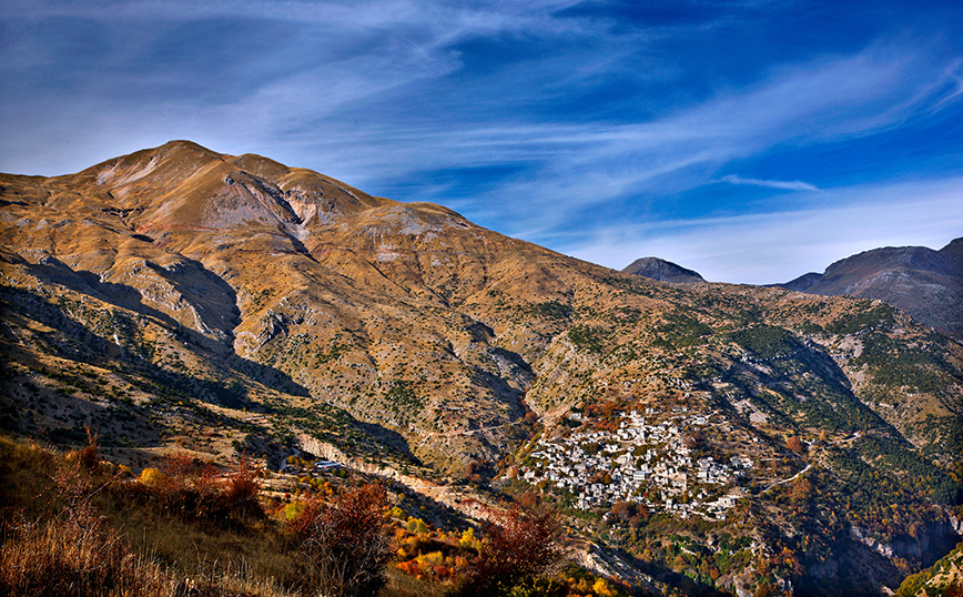 Το Συρράκο, λοιπόν, είναι ένα από τα δύο αντικριστά χωριά των Τζουμέρκων -το άλλο είναι οι Καλαρρύτες– που μοιάζει γαντζωμένο σε μια επιβλητική πλαγιά στα Αθαμανικά Όρη. Χωρίζεται με το «δίδυμο» χωριό ακριβώς απέναντι από τη χαράδρα του ποταμού Χρούσια, ενώ και τα δύο συναντώνται σε υψόμετρο περίπου 1.200 μέτρων στο όρος Περιστέρι.