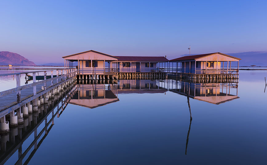 Το όλο κινηματογραφικό σκηνικό συμπληρώνεται από τις πελάδες, τα χαρακτηριστικά ξύλινα σπίτια των ψαράδων που μοιάζουν να αναδύονται από τα νερά της λιμνοθάλασσας.