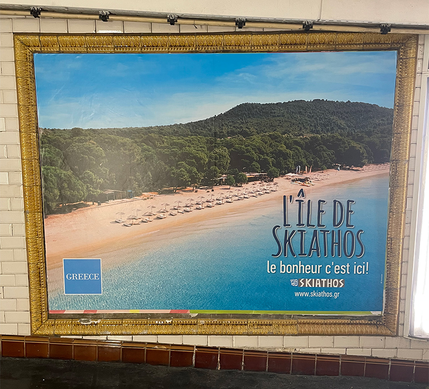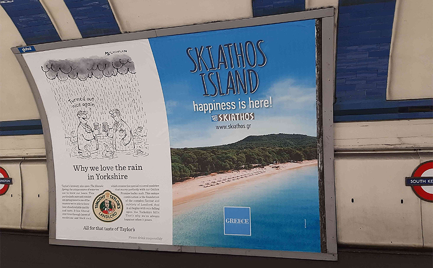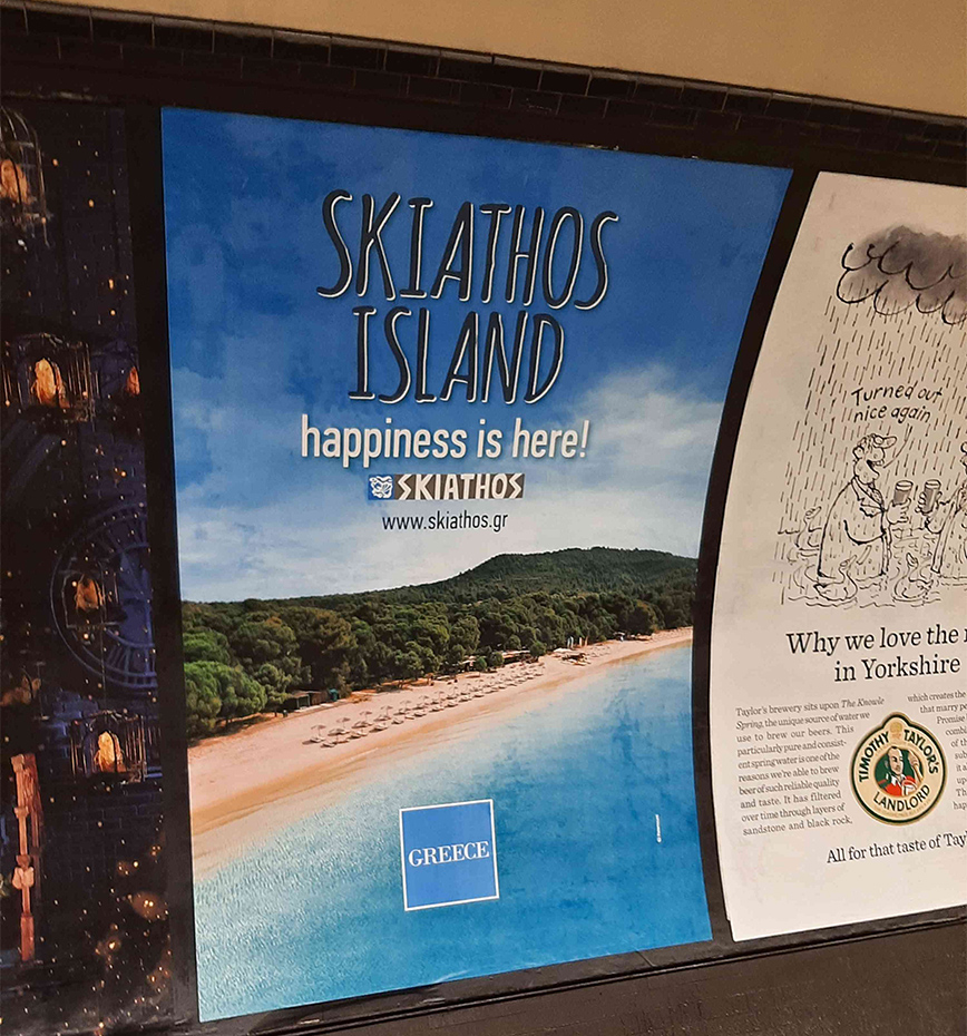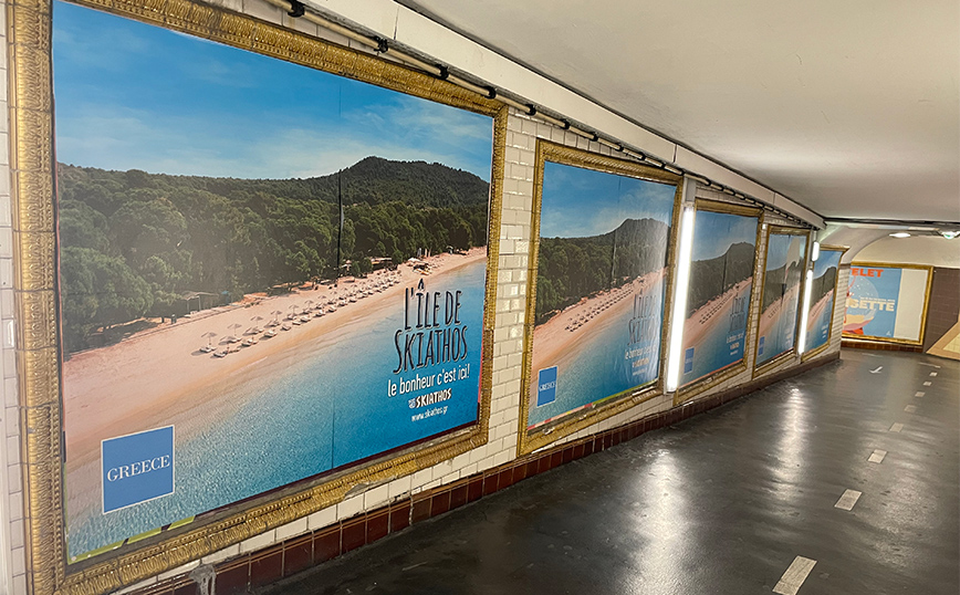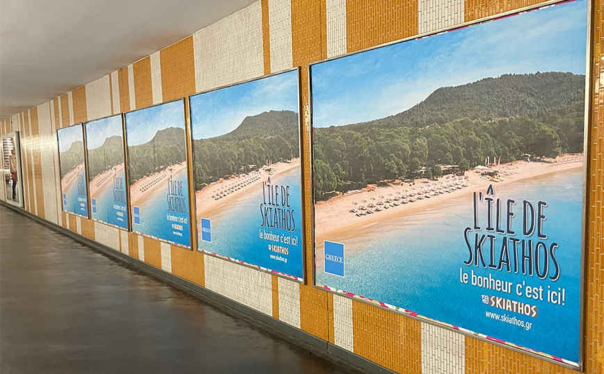 Ήδη από χθες το καταπράσινο νησί των Σποράδων με τις χρυσές αμμουδιές προβάλλεται συστηματικά στο μετρό του Λονδίνου για τέταρτη συνεχή χρονιά και για δεύτερη συνεχή χρονιά στο μετρό του Παρισιού.