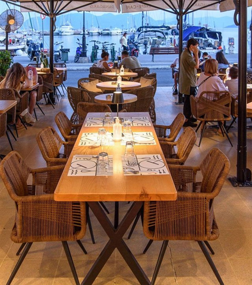 Το εξαιρετικό μενού του που είναι βασισμένο στα ντόπια προϊόντα και καναδεικνύει τις μαγειρικές αξίες του νησιού φέρει την υπογραφή του γνωστού chef Σταύρου Λορέντζου.