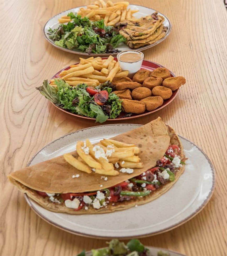 Οι επισκέπτες του καταστήματος μπορούν να απολαύσουν πολλές επιλογές ελληνικού πρωινού όπως τις περιβόητες τηγανίτες της γιαγιάς και την παραδοσιακή στραπατσάδα με φέτα και φρέσκα λαχανικά. Το κατάστημα επίσης σερβίρει σαλάτες, ζυμαρικά, smash burgers, εξωτικά κοκτέιλ με premium ποτά όπως το signature zombie μας.