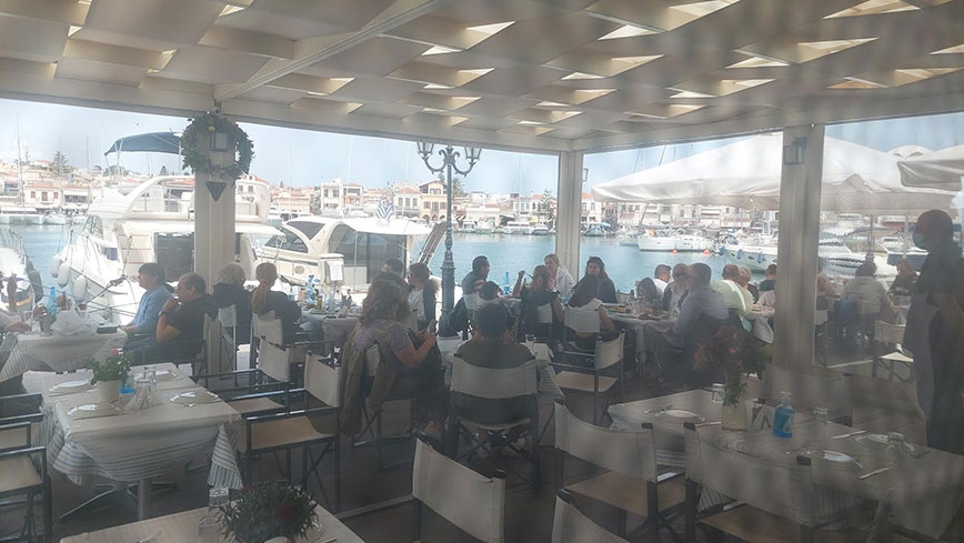Πάνω στον λιμενοβραχίονα στις εγκαταστάσεις του Ναυτικού Ομίλου Αίγινας βρίσκεται το εντευκτήριο όπου ο κάθε επισκέπτης μπορεί να χαλαρώσει, να πιει σε ένα ήσυχο περιβάλλον τον καφέ του αλλά και να απολαύσει πολύ ωραία και γευστικά πιάτα, πάνω στη θάλασσα με απεριόριστη θέα.