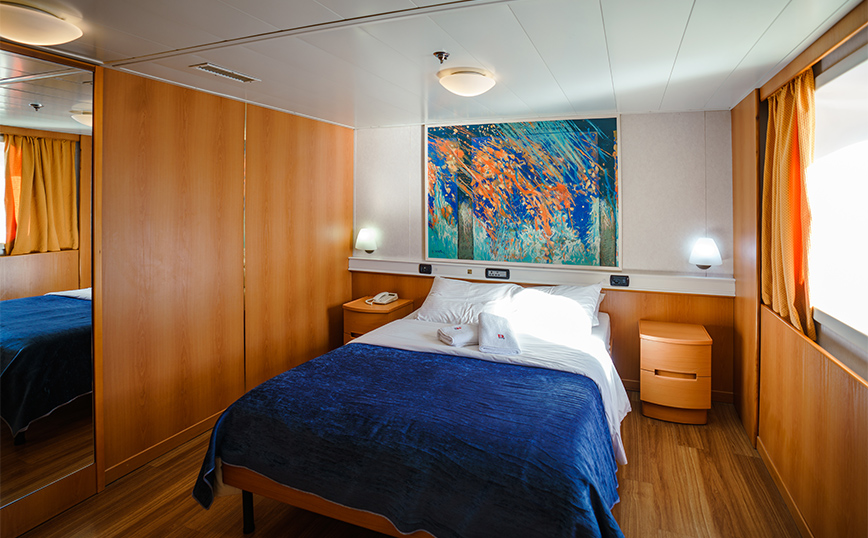Αφού τακτοποιηθήκαμε στις ευρύχωρες καμπίνες, που αν δεν κοιτάξεις έξω από το φινιστρίνι για να δεις το απέραντο γαλάζιο του Αιγαίου, νομίζεις ότι έχεις μπει σε κλίνη 5* ξενοδοχείου, απολαύσαμε το καταπληκτικό μενού του εστιατορίου.
