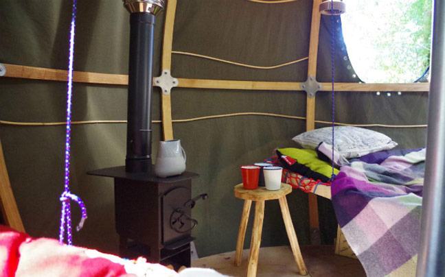 Από το παράθυρο του ιδιότυπου αυτού χώρου οι ταξιδιώτες μπορούν να απολαύσουν τη θέα της φύσης. Οι θερμικές επενδύσεις σας καλύπτουν από το κρύο, ενώ υπάρχει και εγκατάσταση για ξυλόσομπα. Η πρόσβαση στη σκηνή θα είναι από μια μικρή γέφυρα και στη συνέχεια, σε μια υπερυψωμένη πλατφόρμα. Από την υπερυψωμένη ξύλινη πλατφόρμα θα βρείτε την είσοδο της σκηνής, καθώς και το μπάνιο.