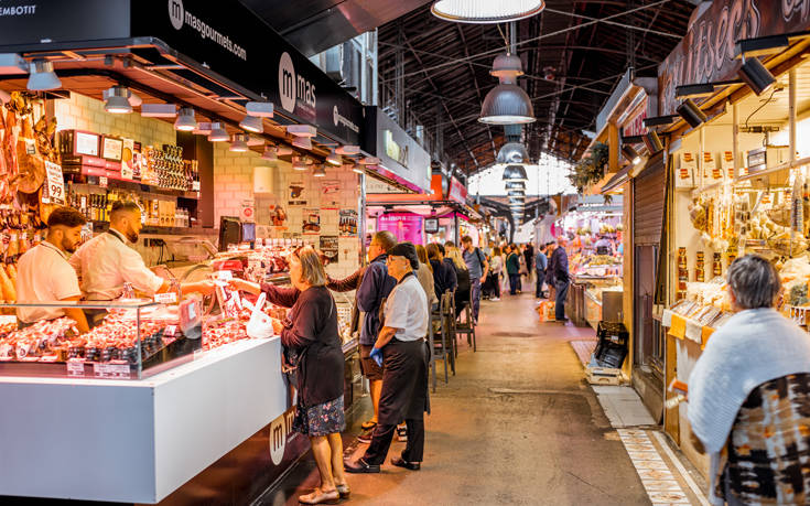 Πίσω από την μεγάλη σιδερένια πόρτα αμέτρητοι πάγκοι με κάθε λογής τρόφιμα από κάθε σημείο του κόσμου (φρούτα, ψάρια, θαλασσινά, λαχανικά, αλλαντικά, τυριά κ.α.), μικροπωλητές που φωνάζουν δυνατά, ντόπιοι και τουρίστες επισκέπτες γίνονται ένα και βιώνουν αυτήν την γοητευτική εμπειρία που τους προσφέρει η αγορά.