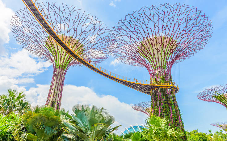 Ένα από τα πιο εντυπωσιακά αξιοθέατά της, με φωτογραφίες που κάνουν το γύρο του κόσμο, είναι το φουτουριστικό πάρκο Gardens By The Bay. Αποτελούμενο από πανύψηλα δέντρα που μοιάζουν με ουρανοξύστες, γνωστά και ως «Supertrees», προκαλούν δέος στον επισκέπτη της μεγαλούπολης, που μπορεί να τα παρατηρήσει από χιλιόμετρα μακριά.