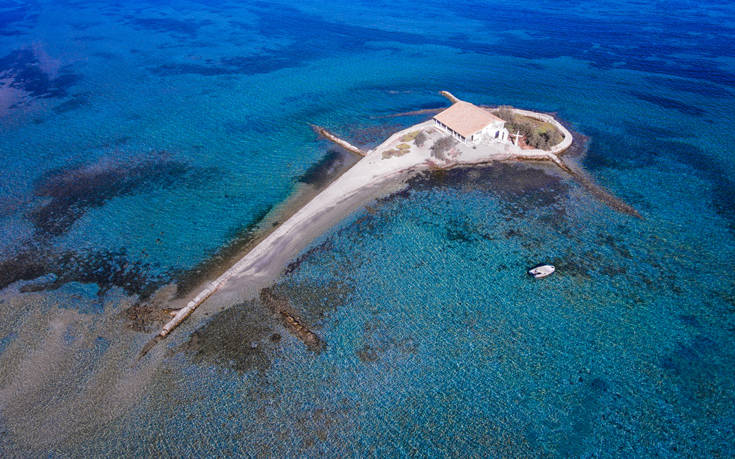 Ο λόγος για το νησάκι του Αγίου Νικολάου, που οφείλει το όνομά του στο ομώνυμο εκκλησάκι που βρίσκεται σε αυτό και είναι έτοιμο να «φιλήσει» την λιμνοθάλασσα μπροστά του.