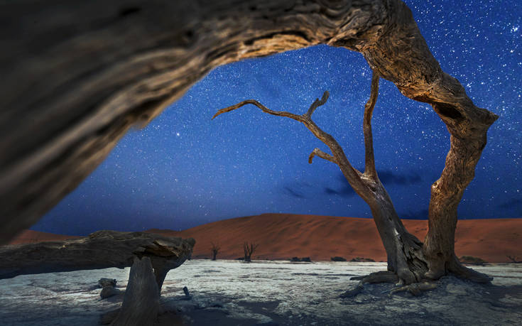 Ανάμεσα στους πανύψηλους κόκκινους αμμόλοφους του Namid Rand, λίγο έξω από το Sossusvlei, στη Ναμίμπια, βρίσκεται ένα τοπίο βγαλμένο λες από ταινία φαντασίας.